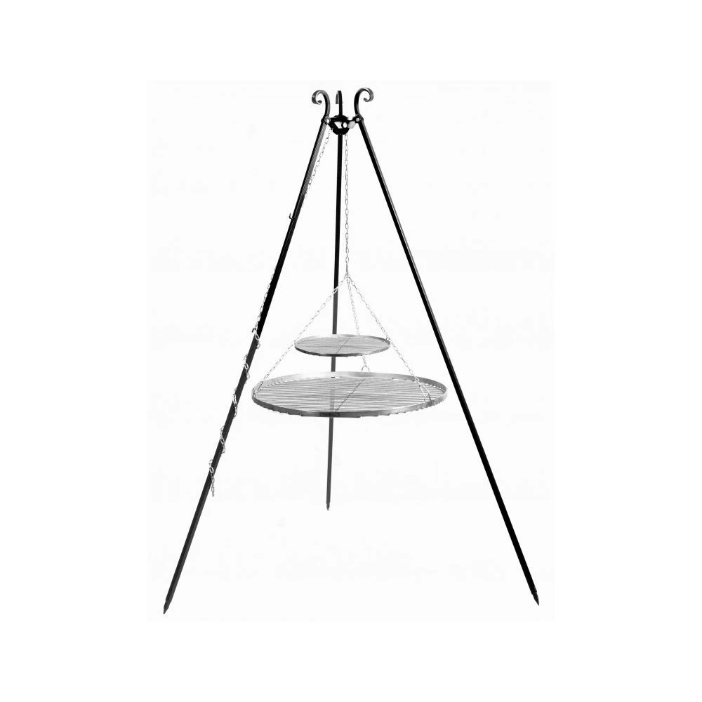 Cook King 180 Cm 3-ben Til Bålsted Med 2 Rustfristål Rist 80 Cm + 40 Cm
