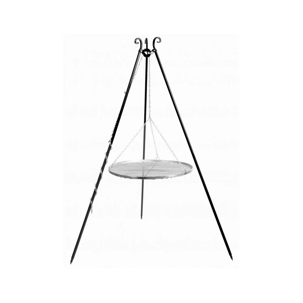 Et bålstativ med en højde på 180 cm inklusiv en rist af ikke-ætsende rustfrit stål er et perfekt produkt til møder med venner i haven. Som varmekilde til denne grill kan du bruge et bål eller traditionelle kulbriketter. Stativet er pulverlakeret, hvilket øger dets vejrbestandighed. Den massive rist er lavet af tykke materialer, og den kan rumme en stor mængde mad. Det stabile stativ gør det muligt for brugerne at placere grillen på enhver overflade, uanset om den er jævn eller ej. En yderligere fordel ved produktet er, at det hurtigt kan samles og skilles ad samt nemt transporteres og opbevares, da stativets ben kan foldes på midten. Imponerende ornamenter inklusive smedede elementer gør denne stativgrill til en fryd for øjet. På grund af den lette regulering af risten er det nemt at ændre højden, den placeres på.
