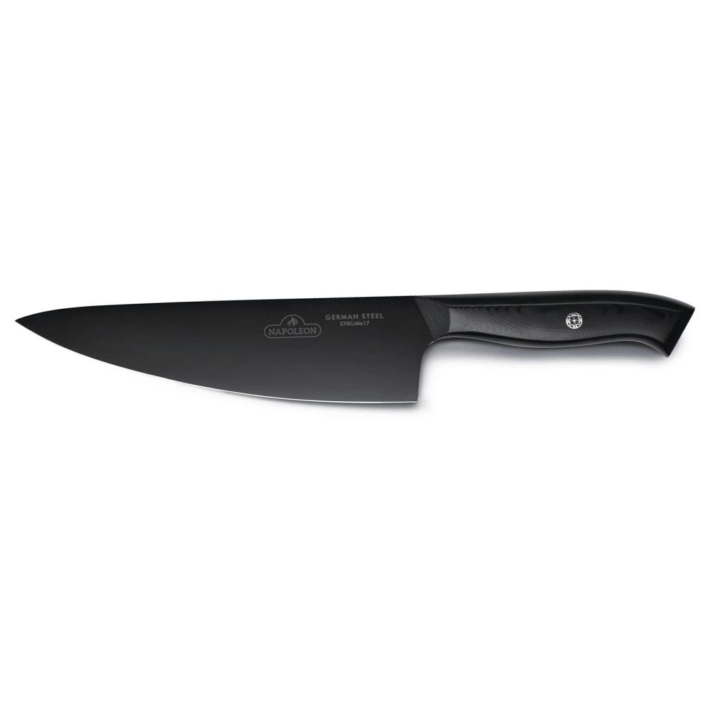 Når først du har prøvet Napoleons Phantom kokkekniv, forstår du hvorfor den har indtaget førstepladsen hos mange grillentusiaster når grillmaden skal tilberedes. Den titaniumbelagte stålklinge er ultraskarp og knivbladet har en ideel længde på 20 cm, der passer til alle formål.