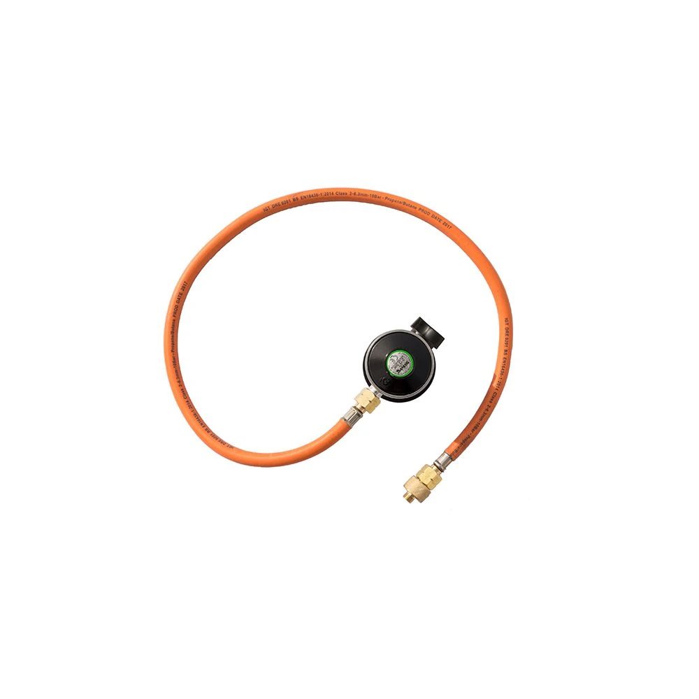 Sættet består af en højtryksregulator ’’click-on’’, 90 cm fleksibel højtryksslange samt gevindstykke for tilslutning til gasgrill af forskellige mærker. Regulatorsæt med konverteringsfunktion skal anvendes, når du ønsker at bruge din gasgrill med en almindelig gasflaske i stedet for en gasdåse. Den må kun anvendes til gasgrill ved skifte fra gasdåse til almindelig gasflaske.