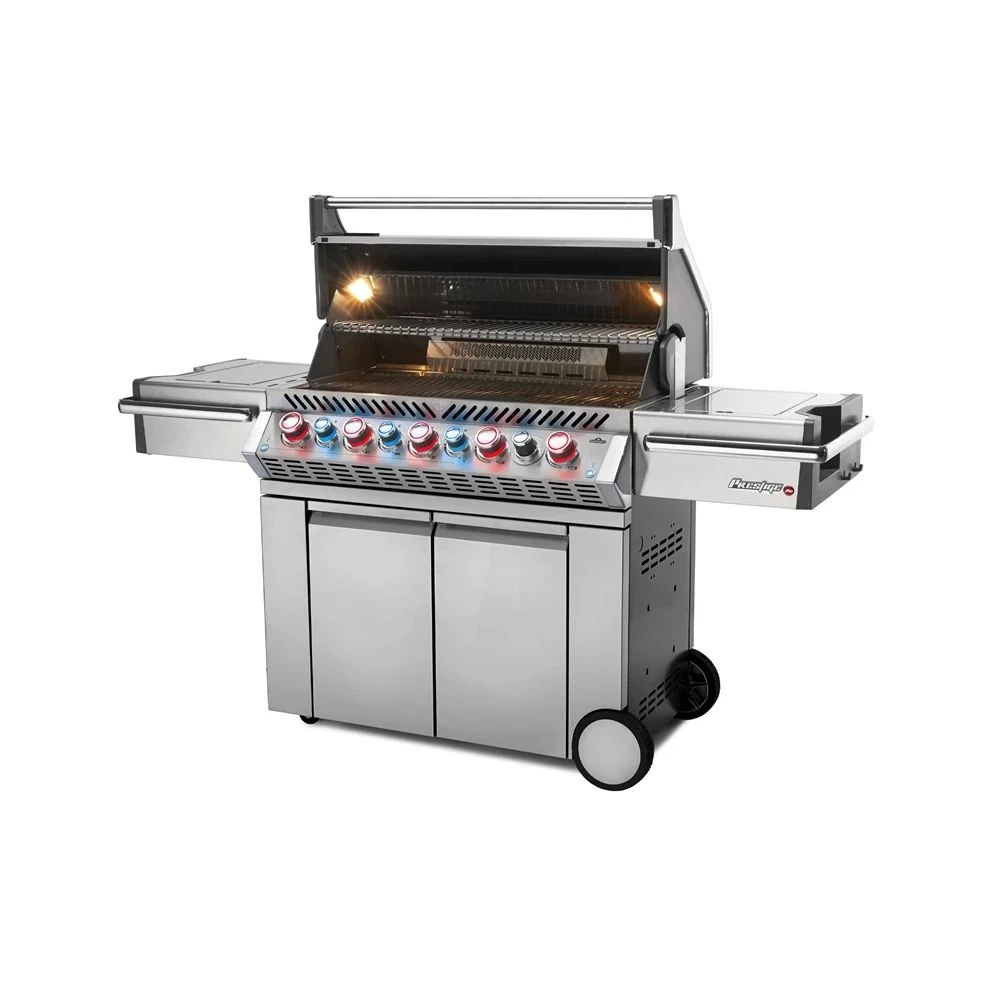 Napoleon Prestige PRO 665 er en rendyrket luksusgrill, som er spækket med funktioner, der kan imponerer enhver. Grillen har bl.a. NIGHT LIGHT™ lys i grill og skabe, samt lys i kontrolknapperne, som du selv kan designe farven på. Derudover vises et Napoleon lys-logo i underlaget foran grillen, når du nærmer dig. Der er soft-close i skabene, og alt det rustfrie stål på grillen er af topkvalitets 304 rustfrit stål. Prestige Pro 665 er til grillperfektionisten, der ikke vil gå på kompromis med noget som helst.