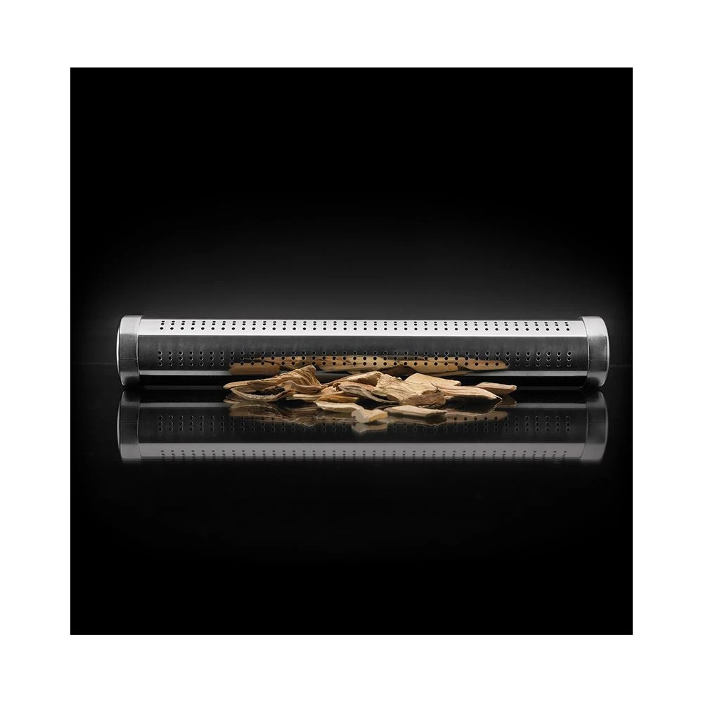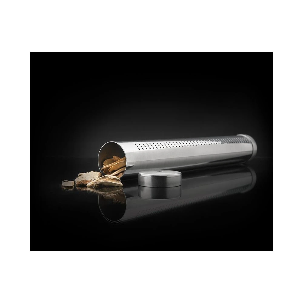 Du lægger røret oven på dine SEAR PLATESTM og under din grillrist. Det kan åbnes i begge ender, har to striber med huller til afgivelse af røg, måler 30,5 cm i længden og 4 cm i diameter.