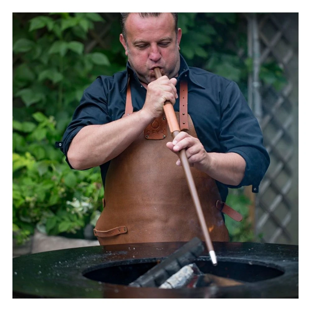 Buffadoo sættet udgør et smukt stativ, et pusterør og en robust stål tang. Pusterøreret vil blive din bedste ven til at få mere ild i dit OFYR og undgå røg mest muligt.
