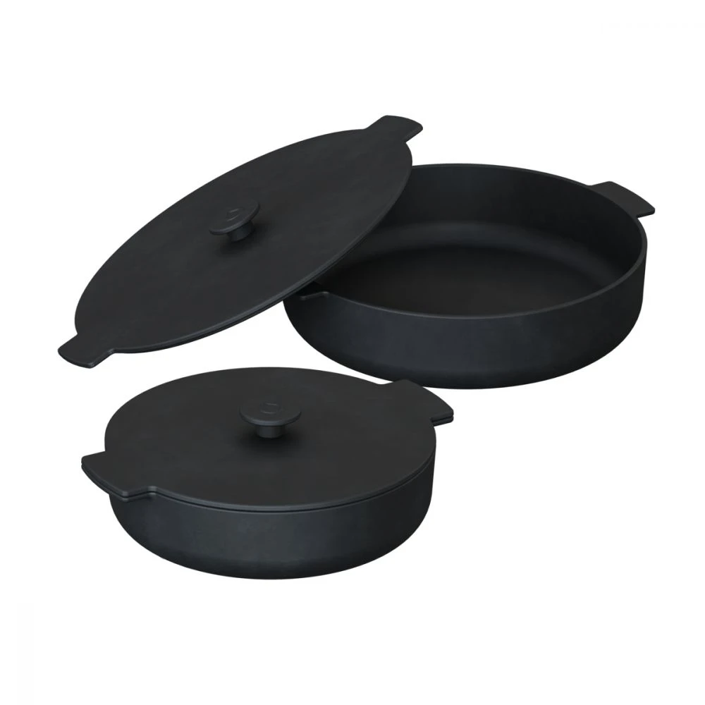 Dette støbejernssæt til dit OFYR består af 2 gryder med tilhørende låg i diameter 21cm og 26cm. Gryderne passer til dit OFYR, og kun fantasien sætter grænser for hvad du kan lave i dem.