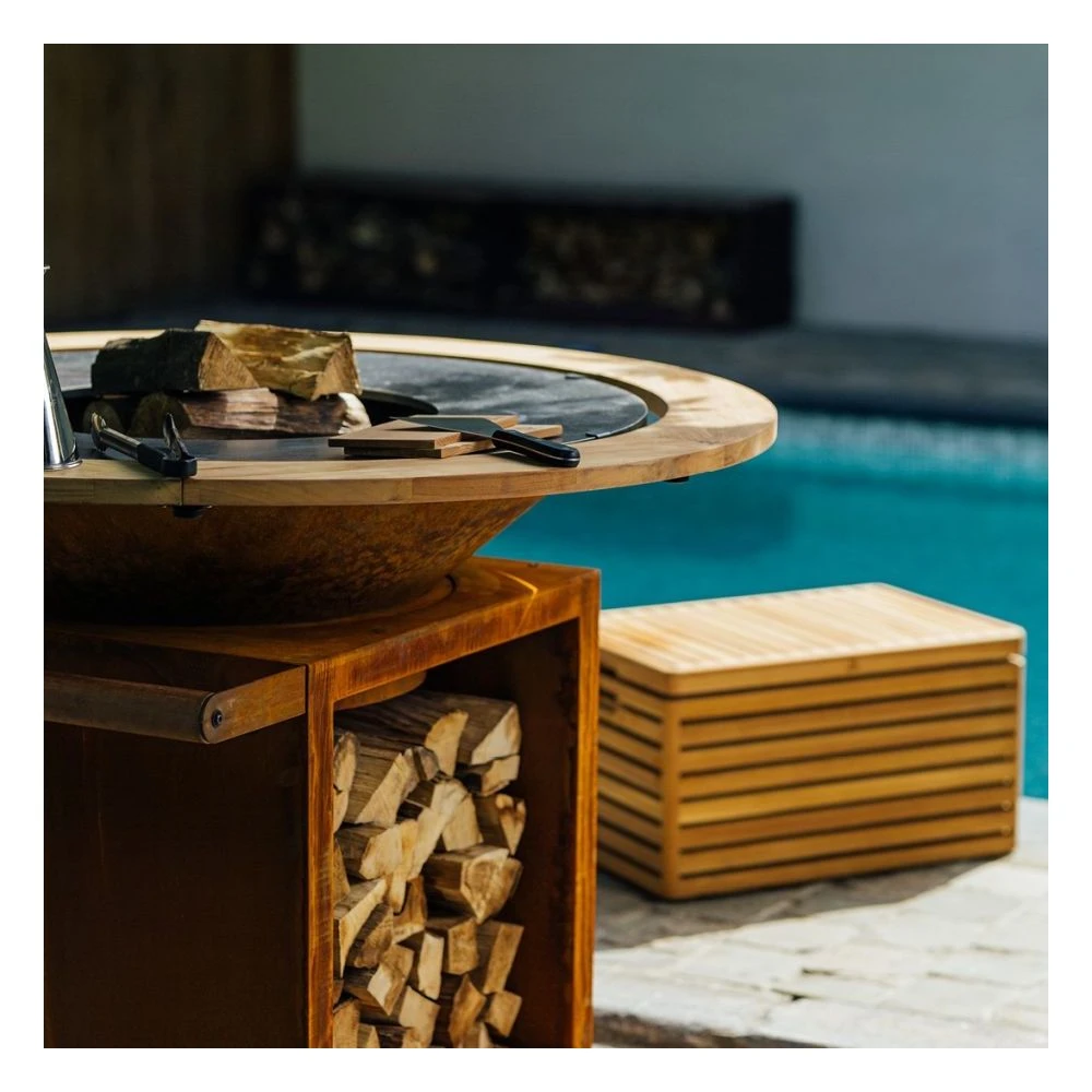 Med denne køler har du altid muligheden for at have råvarerne lige ved hånden, uden at du skal være nervøs for sommervarmen på teressen. Køleren er lavet i smukt teaktræ med indbygget flamingokasse.