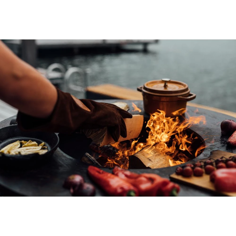 Alle OFYR leveres uden grillristen til midten. Vi anbefaler derfor, at risten tilkøbes ved siden af som minimum, samt cover, gloves og oliekande, for at få den perfekte startpakke til dit OFYR.
