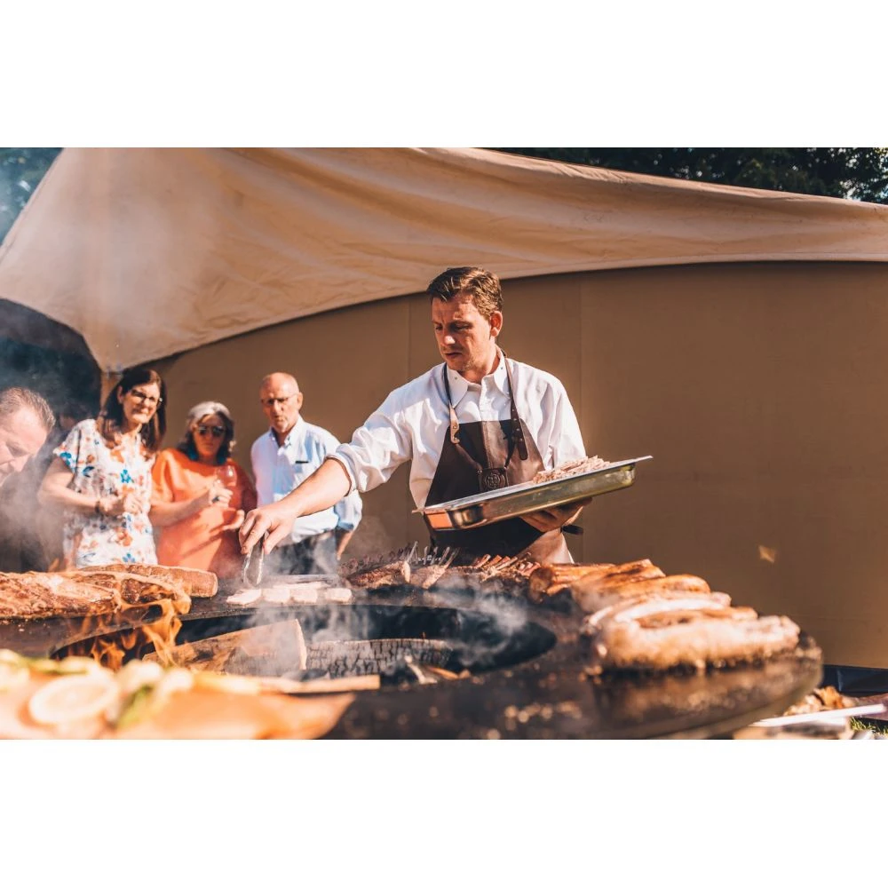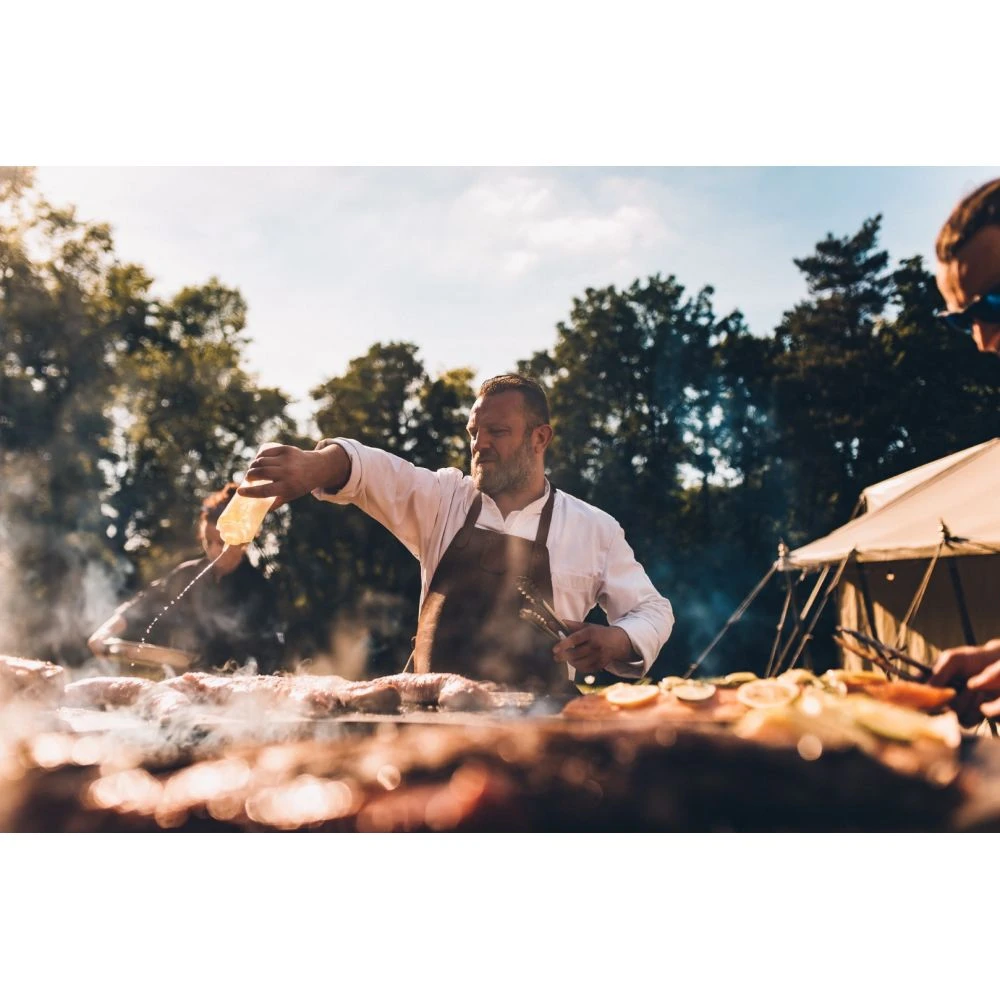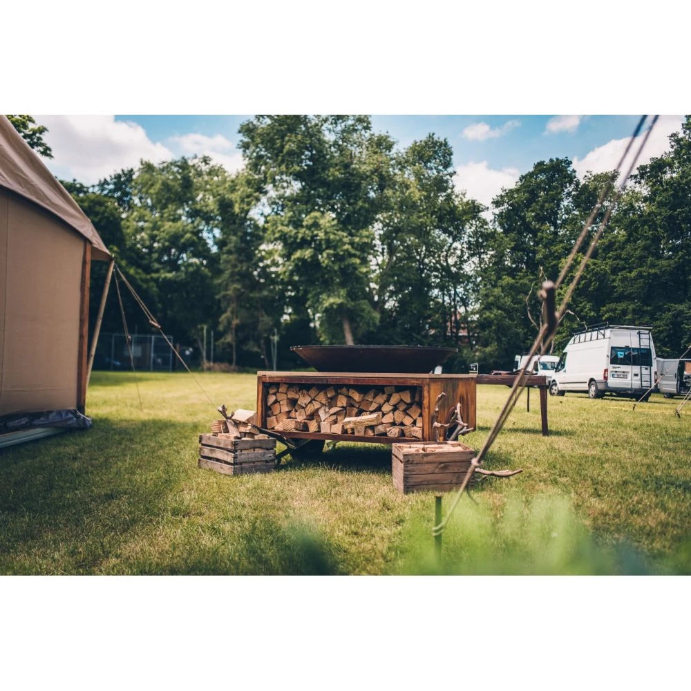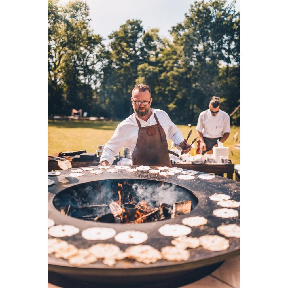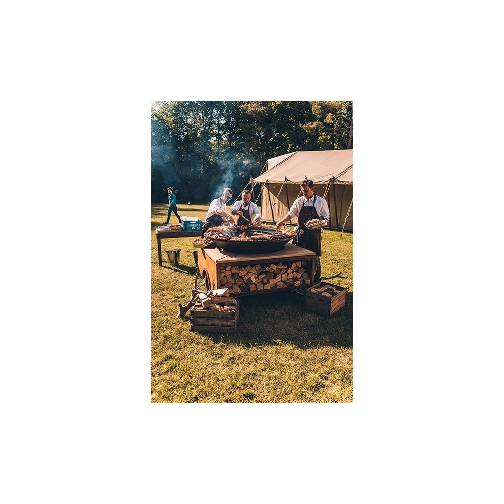 Alle OFYR produkterne kan bruges til professionelt arbejde, men denne super-size model i Corten på hjul er specielt designet til dem, som skal servere mad for store grupper af mennesker. Med en diameter på hele 150 cm er der plads til to personer ved OFYR’et samtidig, hvilket gør det muligt at lave mad for helt op til 150 mennesker på samme tid. Det helt unikke ved dette OFYR XL Trailer er hjulene, som gør det muligt at transportere OFYR’et som en trailer, samt opbevaring i både for -og bagende.