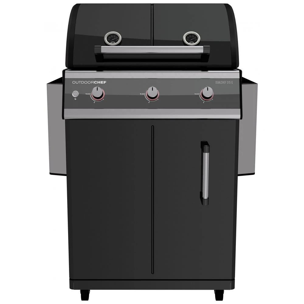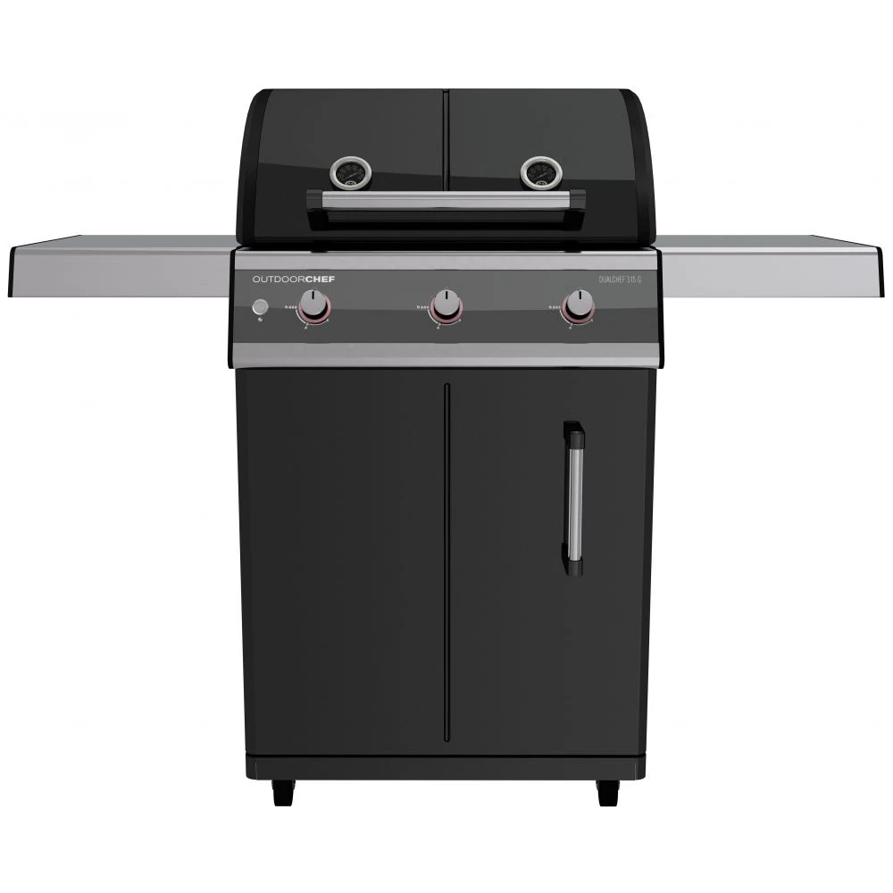- Procelænsemaljeret gril-låg med dobbelte vægge og sidedele i støbt aluminium og 2 integrerede termometre